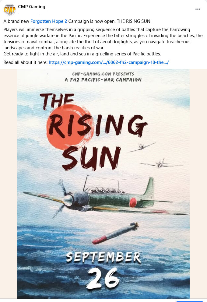 Welcome to another Forgotten Hope 2 Campaign. Players will immerse themselves in a gripping sequence of battles that capture the harrowing essence of jungle warfare in the Pacific. Experience the bitter struggles of invading the beaches, the tensions of naval combat, alongside the thrill of aerial dogfights, as you navigate treacherous landscapes and confront the harsh realities of war. Get ready to fight in the air, land and sea in a gruelling series of Pacific battles. In this campaign you will face the enemy in battles such as, Iwo Jima, Tulagi, Kawjlein, Mogaung, Guam, Wakde Island and other beautifully designed maps. After months of mapping and development we are proud to offer another great FH2 campaign. Be part of the 2nd Imperial Guards Division, or fight as the 3rd Marine Division in 12 intense battles on great custom maps, a few of them unknown and being exclusively made and edited for this campaign. What are you waiting for? Click on the "Join Here" picture on the bottom, choose your regiment, and be a part of this amazing campaign! In This FH2 Campaign You Will Experience: FH2 non-stop action to its limits, close rounds, sneaky/massive attacks, efficient organized defenses and the exhilaration of being victorious. 12 battles spanning the Pacific Theater with custom content and maps you won't see anywhere else. Train and prepare yourself for every battle with your regiment on our training server. Fight in battles with up to 100 players. Earn promotions and medals for your achievements. Communicate directly with your squad using Teamspeak and apply well planned strategy and tactics not seen on any public servers. Form new friendships with like-minded people from all over the world. Taking part is completely free and everybody is welcome!10 points