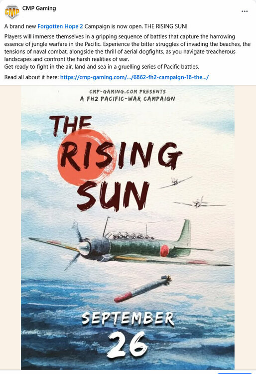 From all of the Committee, Admins and Moderators we want to wish all of the CMP community a wonderful holiday and hopes for a fantastic New Year. With our final Forgotten Hope 2 battle of 2025 complete and the 18th campaign now over, we now look forward to the holidays and heading into the start of a new year. In this moment, it is a perfect time to celebrate the small things that keep CMP strong: a friendly message, or witty banter on Discord or TeamSpeak, someone stepping up to help another member of the community with technical support, real-life meet-ups over food and laughter, and the countless hours spent together in the various games we play, including our signature FH2 campaigns. Those everyday gestures are what make this community a home. In April 2026 CMP will turn 9 — nine years of friendships, shared victories (and defeats), and a welcoming place for players from all walks of life. We've grown to over 3,000 members, our events stay busy, and our spirit of support and camaraderie remains our greatest achievement. Thanks to everyone who helps to run our events, moderates our platforms, organizes games and meet-ups, or simply shows up to play and be kind. As we head into the new year, let’s keep that warmth and teamwork alive. In 2025 we took our two FH2 campaigns from the vast landscapes of the Eastern Front, to the claustrophobic jungles of the Pacific, offering a mix of our previous quality custom maps, and a number of re-imagined and new maps never played before in a campaign. These rarely played battlefronts have proved popular with our community, and we've consistently seen a full server on a Friday night for our battles - not only with gamers from our existing playerbase, but also from a new generation of gamers who have discovered the game and are looking for the fun of being involved in organised events. There is so much that goes on in the background to keep the community, campaigns and events running and we must recognise the core group of CMP members who tirelessly give their all for this wonderful community of players. They work long hours, using their free time to bring our community not only two custom FH2 campaigns each year, but also to make sure that CMP can thrive going forward, and they deserve a heartfelt thank you from us all. Without the dedication from those listed below, there would be no CMP community, and no FH2 campaigns for us all to enjoy: Website, Game Servers, Discord, Teamspeak and All Things Technical kummitus Mapping and Mapping Support Papillon Geopat Pr0z4c Watchtower SgtAlex Blander Harmonikater king_tigernator Stubbfan CptBocquier Vlasov Forums, Graphics, Social Media and Community Support RAnDOOm Sir_Kowskoskey Hawk RayderPSG Erwin Map Balancing and Feedback RayderPSG Hawk McCloskey pozzo Ayrton There are undoubtedly many others in the community that aren't on this list and we thank them all for their help. Donations A massive thank you must also go out to those who have donated throughout 2025 and continue to donate monthly, or offer one-off amounts to keep the forums, Teamspeak, Discord channels and game server up and running. With the help of the CMP members listed below, we managed € 691,25 Raised! Thank you to: Incognito Spindrifter49 GeoPat The_Green_Bunny Strauchdieb AL-SAHAD eXHaLe WasntmeNL Strauchdieb Pepinio Dani3l WOLFXL ZZZkam1kadzeZZZ 0utlaw AL-SAHAD Johonas RayderPSG Without the generous donations from this small number of community members out of the 3,000+ registered on the forums (just 0.4% of the community!), we would not be able to continue with the custom FH2 campaigns, and the expansion of the CMP community to look at supporting more games and events during 2026. If you donated to CMP, but are not on the list above, PM @Quicksilver and receive your 2025 Donators Medal! If you'd like to donate, you can see how, by going here. CMP 2025 Recap Over the past 12 months we have: Hosted both our Eastern Front and Pacific FH2 campaigns. Axis took victory in both of the campaigns this year. For 2026 we will again mix up some of the squads to help try and keep the playing field even in 2026! We want to thank the HQ's, Officers and Squad Leaders for taking the time to lead and help players in these campaigns, attending trainings, meetings and battles. Without you, these campaigns would not have been possible! Also, to the players who may be old veterans, or brand new to FH2 and playing in CMP campaigns - Thank You! Yet again we've seen the server nearing max capacity during the campaigns. We hope you will keep coming back for more in the future. Continued to organise community games such as: CS2 Hell Let Loose Squad 44 Star Citizen Valheim Come and join them if you play these games! Christmas Holiday Break Now that the 18th FH2 campaign is over, those involved in the long process of planning the campaigns will be taking a well deserved break over Christmas and the New Year. However, we have already started making plans for an exciting Campaign #19! We expect the next FH2 campaign to start sometime in March 2026. We'd like to get feedback on the community on what you'd like to see in the next FH2 campaign! We are switching back to more early war battles and have to decide: For the next campaign do we focus on North Africa only, Greece and North Africa, or Greece, North Africa and Italy? Vote in the poll attached to this message to have your say! The next campaign will again consist of 12 battles. We can either play 12 battles in North Africa, or a number of battles in Greece before moving to play the rest in North Africa, or a mix of Greece, North Africa and Italy maps. The poll closes on the 15th January 2026, so make sure to vote before then. We also welcome all new players to join us in upcoming FH2 campaigns, and if you have played in at least one of our campaigns and would like to volunteer for a role as a Squad Leader, Regimental Commanding Officer or even as HQ then please let @Quicksilver or @RayderPSG know by Privat
