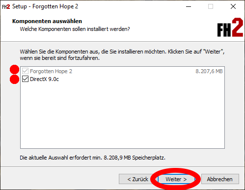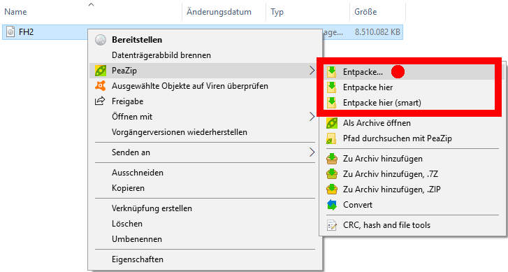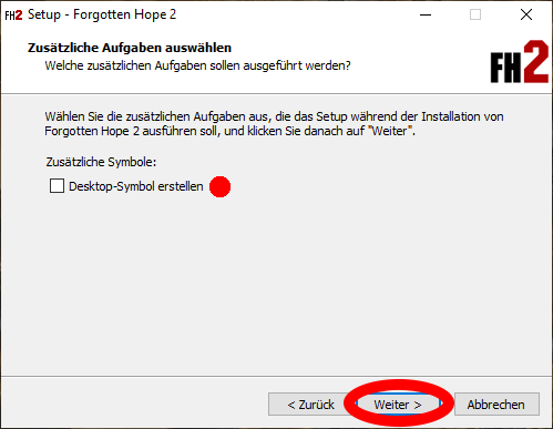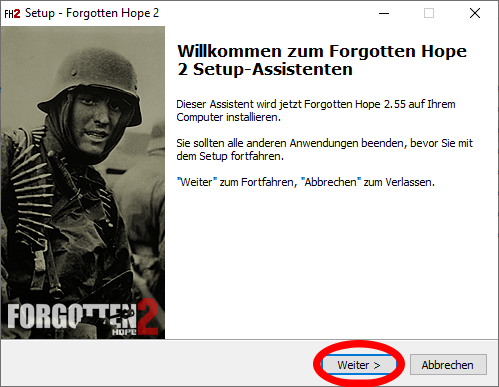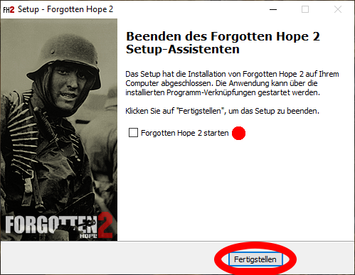Ausführliche deutsche Anleitung zur Installation von Forgotten Hope 2 – Standalone Stand: 19.01.2020 Kurze Erklärung Forgotten Hope 2 Forgotten Hope 2 ist ein Modifikation (kurz Mod) für Battlefield 2 (kurz BF 2)(2005) Offiziele FH 2 Seite: http://forgottenhope.warumdarum.de/news.php? Offizielles FH 2 Forum: http://fhpubforum.warumdarum.de/index.php Forgotten Hope 2 – Standalone Diese Version von FH 2 erlaubt das eigenständige Spielen der Mod ohne das Hauptspiel BF 2. Sie ist inoffiziell und steht in keiner Verbindung zum offiziellen FH 2 Entwickler Team. Zusätzliche Kenntnisse oder Programme Ab Punkt 1.2 benötigst du zusätzliche Kenntnisse oder Programme. Du solltest dich für eine Möglichkeit entscheiden: - (A) Abbild auf eine CD Brennen. - (B) Abbild in ein virtuelles Laufwerk einlegen - (C) Entpacken - Datei Archivierungsprogramm Zum entpacken benötigst du ein Datei Archivierungsprogramm (archiver utility). Ich persönlich nutze Pea-ZIP, du kannst aber auch jedes andere Archivierungsprogramm nutzen (zum Beispiel WinRAR, WinZIP) Download: https://www.peazip.org/ Deutsche Erklärung https://www.peazip.org/translation-peazip-german-entpacker-programme.html Installiere ein Archivierungsprogramm deiner Wahl. 1. Herunterladen 1.1 FH 2 – Standalone Download Lade dir FH 2 – Standalone herunter. 1.2 CD Abbild Nachdem du die Datei heruntergeladen hast, liegt dir nun ein .iso image vor. Du hast nun mindestens 3 Möglichkeiten, wie du mit dem CD Abbild arbeiten kannst. - (A) Abbild auf eine CD Brennen. - (B) Abbild in ein virtuelles Laufwerk einlegen - (C) Abbild entpacken (wie zum Beispiel eine .zip Datei) Einfachheitshalber wähle ich hier die dritte Möglichkeit. 2. Umgang mit dem CD Abbild 2.A.1 Anleitung folgt bei Bedarf 2.B.1 Anleitung folgt bei Bedarf 2.C.1 Entpacken von FH 2 Standalone Wenn du ein Archivierungsprogramm installiert hast kannst du das CD Abbild nun entpacken. (Beispiel anhand von Pea-Zip) 2.C.1.1 Ordner anlegen Lege dir einen Ordner an, in dem du die Abbild Datei (.iso) entpacken möchtest. Der Name des Ordners ist egal. 2.C.1.2 Entpacke... Klicke hierfür einmal mit der rechten Maustaste auf das CD Abbild, wähle aus dem Kontextmenü dein Archivierungsprogramm aus und klicke auf “Entpacke...“ 2.C.1.3 Ordner Auswahl Wähle nun den vorher angelegten Ordner aus und entpacke das CD Abbild in diesen. 3. Installation 3.1 Start Starte die sich nun in dem Ordner befindliche Setup-Datei (.exe). Nun beginnt die Installationsanwendung zu arbeiten. Beachte dabei: Es ist leider nicht möglich einen Ordner, in den das Ganze installiert werden soll, anzugeben. Der Ordner wird auf der Festplatte, auf der sich auch das FH 2 Standalone Setup befindet, installiert. Er wird standardmäßig als „Forgotten Hope 2“ benannt. 3.2 Auswahl der Sprache Du hast nun die Möglichkeit eine die Sprache für die Installation und für das Spiel festzulegen (Tipp: letzteres lässt sich jederzeit wieder ändern!) Wähle die von dir bevorzugte Sprache. Bestätige. 3.3 Information Du wirst nun darüber informiert, dass FH 2 installiert wird. Bestätige. 3.4 Auswahl der Komponenten FH 2 Standalone benötigt verschiedene Komponenten um zu funktionieren: - Forgotten Hope 2 (zwingend notwendig) - DirectX 9.0c (nicht zwingend notwendig, wenn bereits vorhanden) Wenn du dir nicht absolut sicher bist, dass du DirectX 9.0c bereits installiert hast, solltest du es ebenfalls markieren. Bestätige. 3.5 Desktop Symbol Es wird dir das Anlegen eines Desktop-Symbols angeboten. FH 2 ist nur über den offiziellen Forgotten Hope 2 Starter (FH 2 Launcher) spielbar, daher solltest du hier die Markierung entfernen. Eine Hilfestellung wie du diesen installierst, findest du am Ende dieser Anleitung. Bestätige. 3.6 Installation Das Programm beginnt nun mit der eigentlichen Installation. Nach circa 2 Minuten, sollte die Installation abgeschlossen sein und es wird dir vorgeschlagen FH 2 zu starten. Auch hier solltest du die Markierung entfernen (Begründung siehe Punkt 3.5) Bestätige. 3.7 Erfolg Du hast nun Erfolgreich FH 2 Standalone installiert. Wie bereits in Punkt 3.5 erwähnt wurde, musst du nun den FH 2 Launcher installieren um überhaupt spielen zu können. Klicke dafür hier: