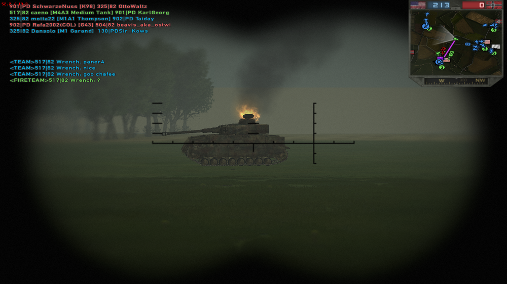 Best: - Spotting in coordination with caeno. Worst: - Server crash on an attacking round where we were in the lead. Ihadn't died yet and was guarding my bridges :(. Funniest: - Spotting near villa vino, i try to sneak the hill up to monastery to get a good view on village and spot for my team. Being super carefull i sneak towards the PAK bunker to check for enemies and mine the gun. I then have to cross a barren wasteland to get to my preferred position. There is a machine gun bunker along the way were i can take a break to check for enemies. I see a guy walking and freeze, luckily i spot it is an ally (i walk around with binoculars by default instead of a rifle because shooting is a last resort for desperate people). I think nice, i have comapny and run towards him and get cozy with him next to the bunker. I go prone to take a look behind the corner and get shot. TK by said ally. I was prone 30 cm away from him. He shot me with a scoped rifle. That was funny. Most hated player: -/ Most loved/liked player: - caeno and our pilots Best Battle Photo - Caeno doing work with the chaffee shooting an enemy panther. A safari tracker/spotter captures the last moments of this big cat. Bomb runs look best from a distance. Other: - I will be sad that i can't play these maps anymore, they so good.