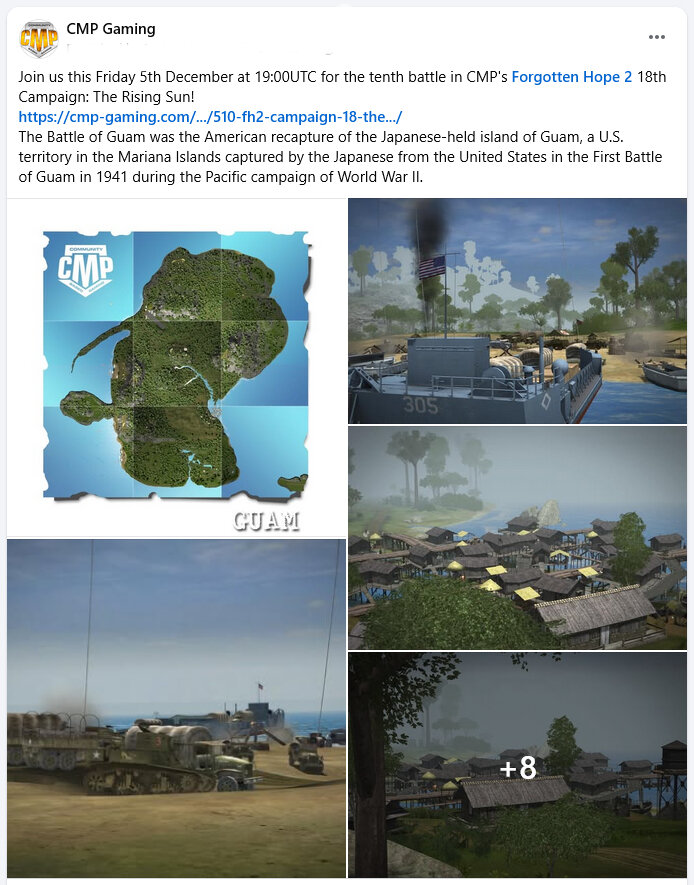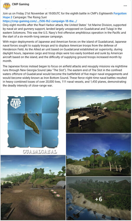 untilCMP FH2 Campaign #18: The Rising Sun Battle #8: Guadalcanal History "The World War II Battle of Guadalcanal was the first major offensive and a decisive victory for the Allies in the Pacific theater. With Japanese troops stationed in this section of the Solomon Islands, U.S. marines launched a surprise attack in August 1942 and took control of an air base under construction. Reinforcements were funneled to the island as a series of land and sea clashes unfolded, and both sides endured heavy losses to their warship contingents. However, the Japanese suffered a far greater toll of casualties, forcing their withdrawal from Guadalcanal by February 1943. When Japanese troops arrived on Guadalcanal on June 8, 1942, to construct an air base, and then American marines landed two months later to take it away from them, few people outside of the South Pacific had ever heard of that 2,500-square-mile speck of jungle in the Solomon Islands. But the ensuing six-month Guadalcanal campaign proved to be the turning point of the Pacific war. Strategically, possession of a Guadalcanal air base was important to control of the sea lines of communication between the United States and Australia. Operationally, the Battle of Guadalcanal was notable for the interrelationship of a complex series of engagements on the ground, at sea, and in the air. Tactically, what stood out was the resolve and resourcefulness of the U.S. Marines, whose tenacious defense of the air base dubbed Henderson Field enabled the Americans to secure air superiority."