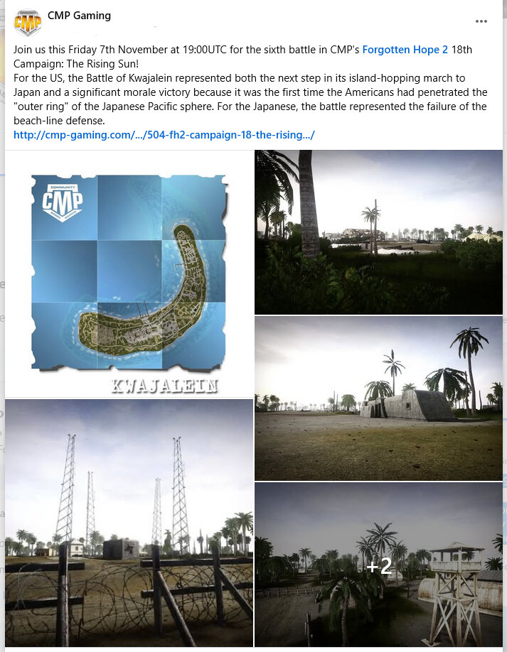untilCMP FH2 Campaign #18: The Rising Sun Battle #6: Kwajalein The Problem with the Friendly Fire Kwajalein 1944 The US Army dedicated about 25% of its strength to the pacific, about 22 divisions and associated air forces. The remaining 75% was focused on the European and Mediterranean theaters, but the Army was by no means an after thought in the Pacific Theater. Operation Flintlock conducted in the Kwajalein Atoll was one of the lesser known battles in the Pacific but it was nonetheless complex, with battles fought on seven main islands scattered over a large area, and made more complex by the by-passed Japanese garrisons that had to be reconnoitered and cleared. The Southern island of Kwajalein was attacked by the 7th Infantry Division of the US Army who had seen action earlier in the Pacific, though the conditions were quite the opposite. They had previously fought in the Alaskan Aleutian Islands, on the island of Kiska. During that Operation there were noted friendly fire incidents and therefor later on you see the use of colored panels worn by troops. (click on the image to enlarge) The ID panel finds itself being used en masse for this attack along with the camouflage painted helmet, the shell of which is painted a bright yellow and green with hand woven camouflage nets. Kwajalein by Watchtower The Battle of Kwajalein took place from 31 January-3 February 1944, on Kwajalein Atoll in the Marshall Islands. Employing the hard-learned lessons of the Battle of Tarawa, the US launched a successful twin assault on the main islands of Kwajalein in the south and Roi-Namur in the north. The Japanese defenders put up stiff resistance, although outnumbered and under-prepared. For the US, the battle represented both the next step in its island-hopping march to Japan and a significant morale victory because it was the first time the Americans had penetrated the "outer ring" of the Japanese Pacific sphere. For the J