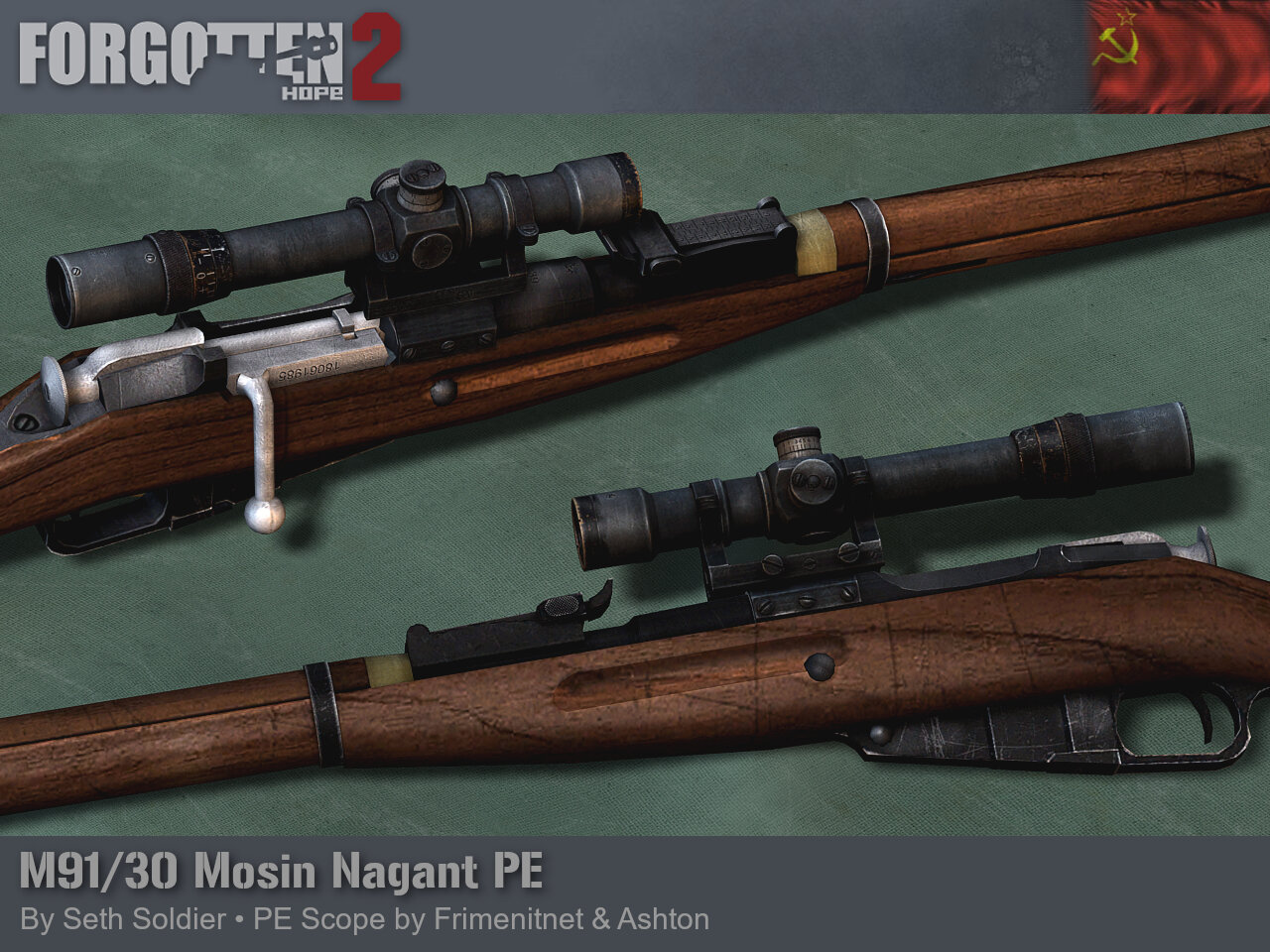 The Road to Forgotten Hope 2.66 Red Christmas - Part 1 Posted by: CptBocquier 10.06.2025 18:00 GMT Hello and welcome back to another Forgotten Hope 2 update. As we get closer to summer, Forgotten Hope will provide some fine refreshments to cool you down. We are excited to announce that our update 2.66 Red Christmas will be released on: Tuesday 17th June 2025 To start our usual stream of "Road to" news gently, we propose a new addition to the Soviet hand weapon arsenal. In the mid-1920s, the Soviets were interested in developing a sniper rifle program and started a series of trials with ordered German commercial scopes like the Zeiss Zielvier and Busch Visar N°5 scopes, attached to their M/91 Dragoon rifles. While those German manufacturers started producing modified scopes and mounts following Russian demands, local designers such as A. Smirnsky developed a top mount for the scopes. In early 1930, the Main Artillery Directorate selected the Busch Visar scopes on the Smirnsky mount. The Busch Visar was favored notably for its windage adjustment options. Following improvements, the Soviets started the production of their own copy, designated as "Rifle Scope Model 1931" with a 3.87x magnification. In 1933, the scope would get its final appearance, with the central box shape being rounded at the corners and external locks removed. Mass production then started for the scope, now coded "PE". Approximately 47,237 scopes were produced between 1933 and 1937, when the simplified version of the scope, known nowadays as "PEM", was preferred. Soviet M91/30 rifles with PE scopes were the most numerous captured sniper rifles in Finnish inventories from the Winter War through the Continuation War and were designated Tarkka-ampujakivääri M/30. German troops would also use them under the name Zielfernrohrgewehr 256(r) . Our PE scope was made by Frimenitnet and Ashton, mounted on the Mosin Nagants made by Seth Soldier.