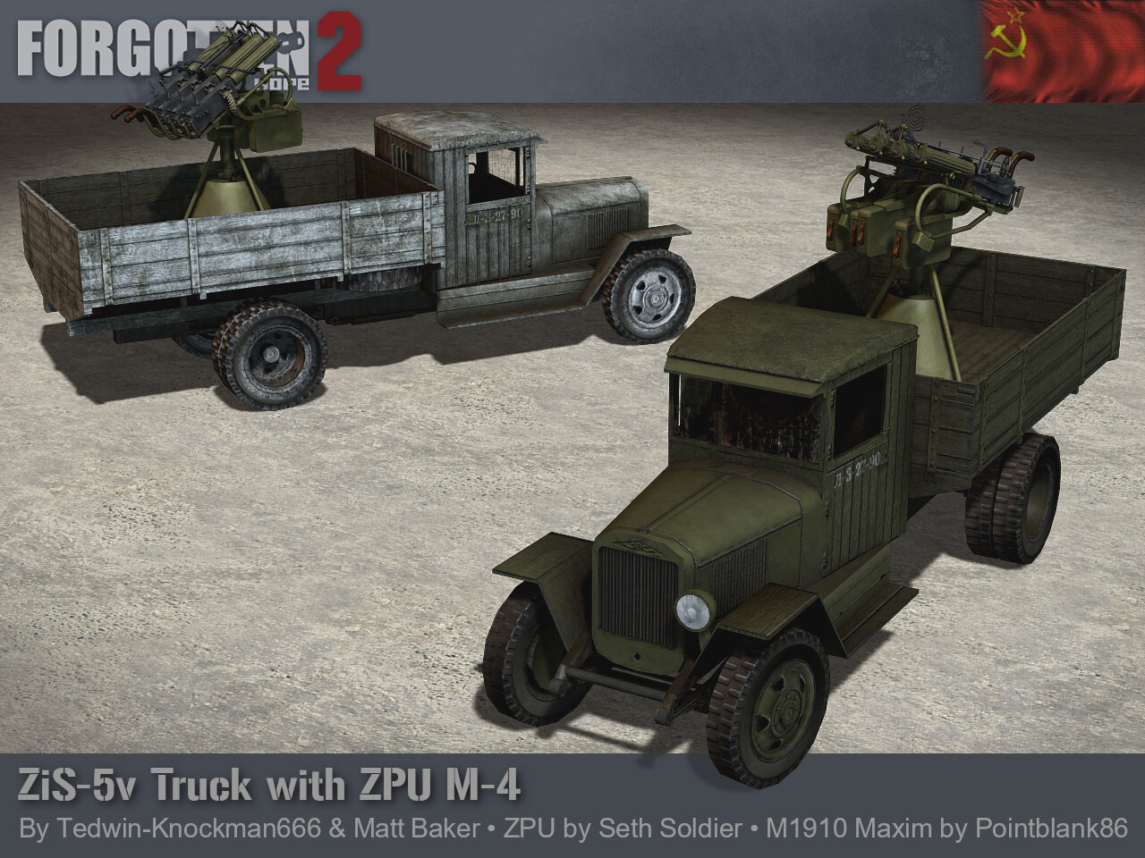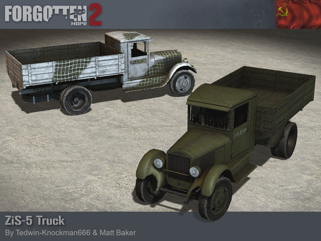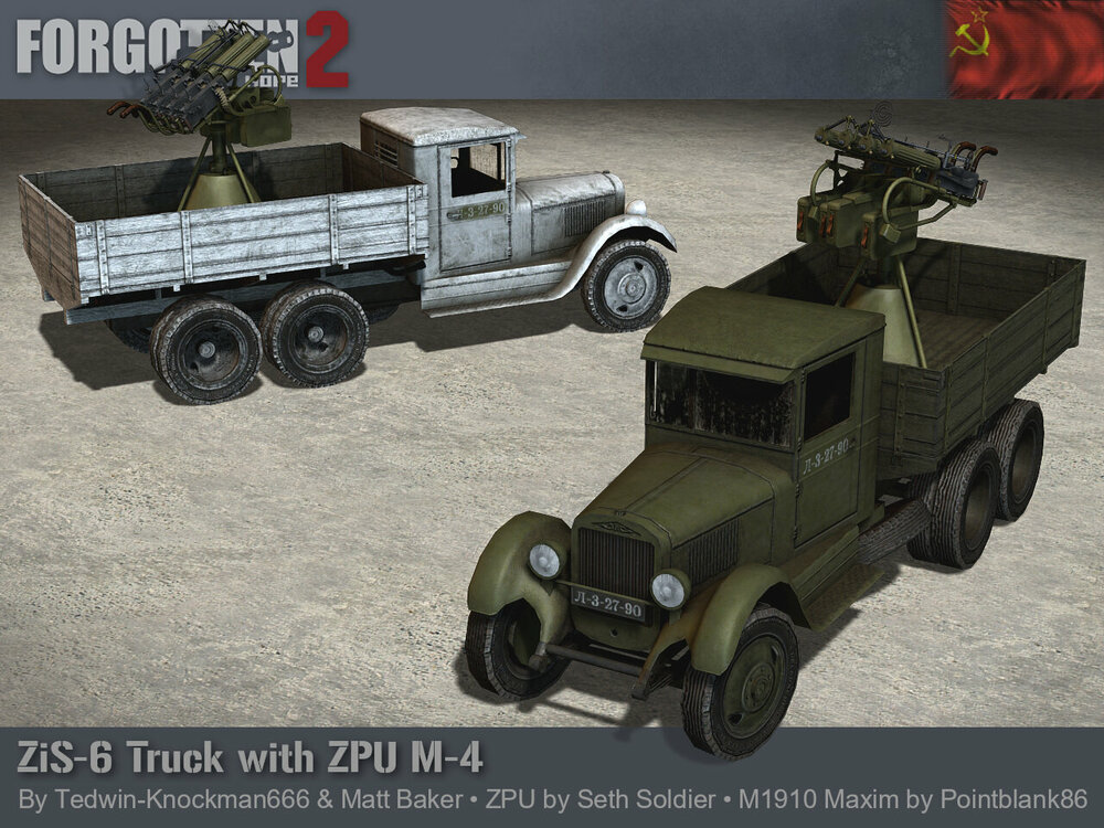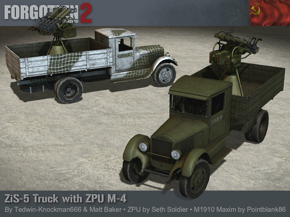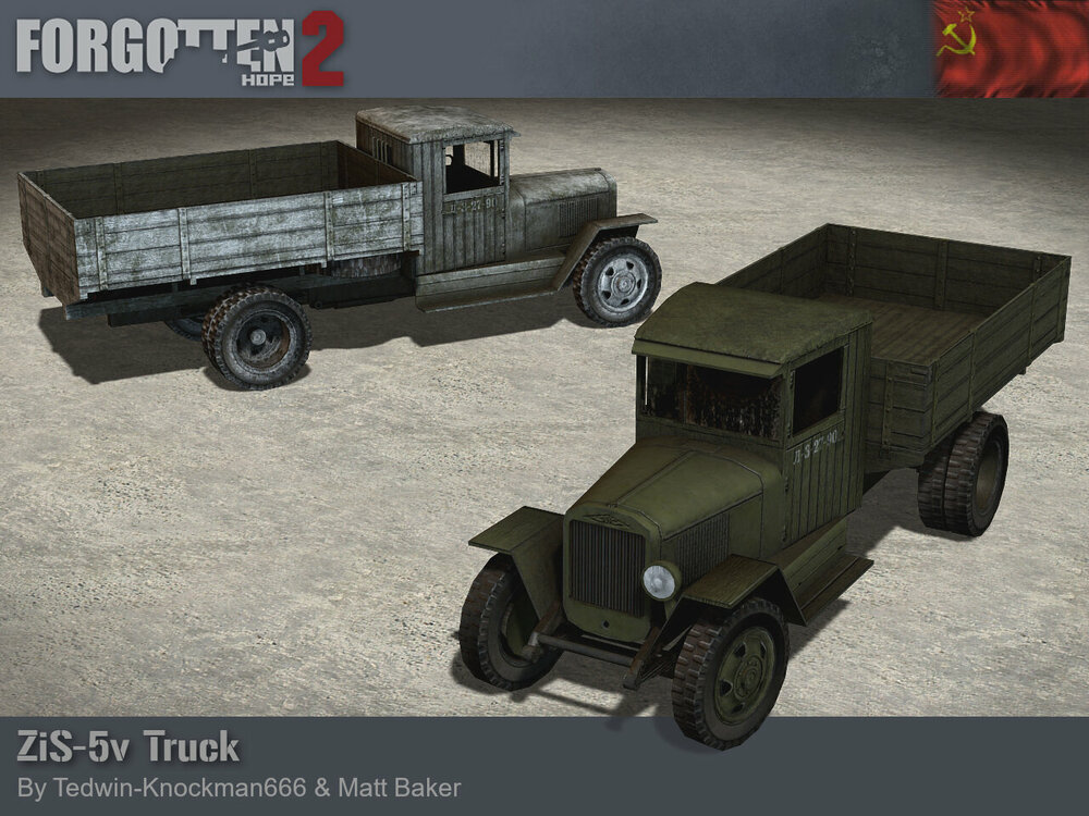 The Road to Forgotten Hope 2.66 Red Christmas - Part 4 Posted by: Guarnere & CptBocquier 13.06.2025 18:00 GMT Hello and welcome back to another Forgotten Hope 2 update. While the Soviet Army was introduced in Forgotten Hope 2.5, it has been equipped since then with lend-lease trucks. Today we introduce what would be ingame the main soviet trucks in the early stage of the war, the ZIS trucks. The ZIS-5 was one of the central pillars and workhorse of Soviet logistics and transportation alongside the GAZ AA and MM truck series during World War Two and beyond. In 1933, at the Moscow Automobile Plant (AMO), the production of the two-axle, three-ton AMO-5 truck started, for commercial and military purposes. Although it was a license-built copy of early 1930s American commercial trucks, it was manufactured like its predecessor, the 2.5-ton AMO-3, with Russian components and not with American truck kits. After the factory was renamed to Factory No. 2 Zavod Imeni Stalina (ZIS), the truck's designation was also changed accordingly to ZIS-5. In parallel, a three-axle version was also produced, designated ZIS-6. This version, like the previous one, served as a base for a lot of specialized versions for different purposes like halftracks, ambulances, and fuel or water tankers among others, the most famous one being the multiple rocket platform "BM-13 Katyusha". Some of them where also equipped with the 7.62 mm anti-aircraft "ZPU M-4" mount. From 1933 to 1941, the total production of the ZIS-5 truck were produced 325,051 units, while 21,239 units of ZIS-6 were made. The ZIS trucks had a crucial role during the "Road of Life", the transport routes that supplied with food, ammunition and other equipment the Leningrad pocket through the ice roads of the lake Ladoga during the winters of 1941-1942 and 1942-1943. Although by July 1944, the majority of new vehicles in the Red Army service came from the Lend-Lease deliveries, like the Studebaker US6, the Red Army was still heavily dependant of the ZIS and GAZ trucks variants. Ours were made by Tedwin-Knockman666 and Matt Baker. If you have missed any previous updates this week, you can find links to them here: Go to Road to Forgotten Hope 2.66 Red Christmas - Part 1 Go to Road to Forgotten Hope 2.66 Red Christmas - Part 2 Go to Road to Forgotten Hope 2.66 Red Christmas - Part 3