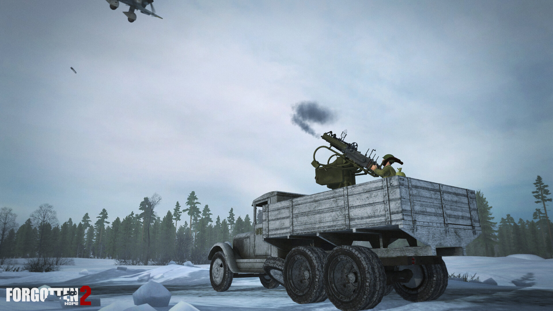 The Road to Forgotten Hope 2.66 Red Christmas - Part 5 Posted by: Guarnere & CptBocquier 14.06.2025 18:00 GMT Hello and welcome back to another Forgotten Hope 2 update. Yesterday we introduced some pre-war trucks from the USSR, today we will have a lend-lease plane and an ersatz truck, depicting the dire situation for the Soviet Army in the first year following the German invasion. From 1941 to 1944, the Soviet Union imported through the Lend-Lease agreement approximately 2,425 American-made Curtiss P-40's, from the B, C, E, K, L and N variants, making it the fourth numerous foreign aircraft in the Soviet inventory after the P-39, the Hurricane and the P-63. The first deliveries of P-40B and C's alongside few Hurricane aircrafts arrived at Arkhangelsk on August 31st 1941, onboard the British freighter S.S. New Westminster City, part of the "Dervish" Convoy that opened the Artic route to the USSR. Those aircrafts were test flown by the 27th Reserve Regiment at the Kadnikov airfield to later be delivered to the different VVS KA (Red Army Air Force), PVO (National Air Defense) Aviation Regiments and the VVS VMF (Navy Aviation). The Aviation Regiments started the war equipped with I-15, I-16 or MiG-3 but after losing these aircrafts during Operation Barbarossa, by early 1942, they started to replace them with P-40C's. Gradually and as a result of subsequent losses, they were replaced by the later P-40 variants such as the E or K. The Soviet P-40's were deployed on all fronts and fought from the air in all the crucial battles like Moscow, Leningrad, Stalingrad, Kuban, Crimea, Kursk or Karelia until 1944, when the shipment of this type of aircraft ended and new modern domestic versions replaced the older P-40 models. Our Curtiss P-40E was made by Rad, Lobo, Stubbfan, Herc and textured in soviet colours by Matt Baker. At the end of 1941, due the proximity of the German Army to Moscow, the ZIS No. 2 factory was closed and production was relocated to Ulyanovsk, on the Volga and to Miass, in the Urals. It's in this context with an important shortage of raw materials that from February 1942, the ZIS production was forced to be simplified : round fenders were changed with angled ones, cabin was made in wood and the front bumper and right headlight were removed. From 1942 to 1948, a total of 207,260 trucks of this simplified version, called ZIS-5V, were produced. At last for today, we also wanted to write something about an existing content ingame that we never mentionned here, the Zwillingssockel 36. This early anti-aircraft system consisted in a single pedestal with a 360 deegres traverse and equipped with two 7.92 mm Maschinengewehr 34s. The operator sat in a chair at the rear and took aim using a height-adjustable ring sight installed between the two MGs. Entering service in 1936, it was used on static light anti-aircraft positions, for instance on WN 64 at Omaha Beach, or used on board on towed wagons, light cars, halftracks and of course trucks like the Opel Blitz 3.6-36S. Although the production stopped in 1941 given the limitation of the system, leaving room for more capable guns like the 2 cm FlaK, it remained in service practically the entire conflict. Our Zwillingssockel 36 was made by ctz. It is mounted on the Opel Blitz from Mange and jimbob, with the panzergrau texture by Toddel. Last but not least, we would like to share with you the FH2 2.65 Panzerfaust compilation from our dear Slayer1976: If you have missed any previous updates this week, you can find links to them here: Go to Road to Forgotten Hope 2.66 Red Christmas - Part 1 Go to Road to Forgotten Hope 2.66 Red Christmas - Part 2 Go to Road to Forgotten Hope 2.66 Red Christmas - Part 3 Go to Road to Forgotten Hope 2.66 Red Christmas - Part 4