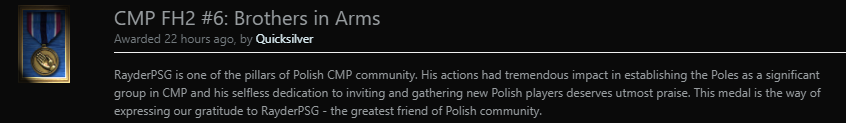 Best: - The numbers and the way the campaign ended: with allies way more motivated and getting some results. Good job! Best2: the number of new players and oldies i saw during the campaign. Without you numbers would've been worse! Thanks for enjoying with us Best3: @Wualy back on his duty: arty. @eXHaLe went mad about ahahah . Also @thunder493 playing last battle! BEst4: finally campaign is finished, empty friday for (real life) friends! lol Worst: -campaign is finished, fuck nooooo ! Funniest: -I misunderstood something and sneaked while @CptBocquier was doing so.But we both got the objectives! @Nightwing bagging me. Worst thing, I didn't take screens baggin him back... Meeting the chaos Most hated player: - anyone Most loved/liked player: - EVERYONE. But here comes some special mentions ! @Sir_Kowskoskey because this man does his best to make this comunitty better and is always up to some sacrifice! (may him be masochisitc, who knows?) . But even more improtant, he can invade atmosphere with some motivation!! He and the guys (thanks to them too) who switched to make this better, thanks a bunch! @kummitus because man what would we do without the tehnical background from this guy! thanks kummi ! @Quicksilver for 24/7 tests and info about situation, always paying attention, aswell as @RAnDOOm with announcements and such, @Hawk with media and others. @Wualy because he's cool and doesn't need more. Of course, all the love goes to HQ's , CO's , SL's and mappers too, but this time my special mention is for @Blander and @knokworst which, If I'm not wrong, were HQ for their first time. I hope it isn't the last. You guys did great! Also @turbomursu for being back from retreat. About co's what @gen.p @Ronid and @Cpt.Poland ve been doing with the poles is amazing, and wasn't expected; congrats to them . @Darkpotato @L.L.HERRAIZ porque ha sido vuestra primera campaña solitos y porque qué haría sin vosotros! And on the end....the players, of course, as without you we would be all missing! From the experienced, oldies to the very new ones! Thanks for joining us guys! See you in 2020! Best Battle Photo - https://cmp-gaming.com/topic/2474-best-battle-photo-medal/ "To destroy or not to destroy the everyone's pic, the dilemma" He was like: Other: LOOKING FORWARD FOR THE NEXT ONE! MERRY CHRISTMAS AND HAVE A GOOD START OF 2020 EVERYONE!