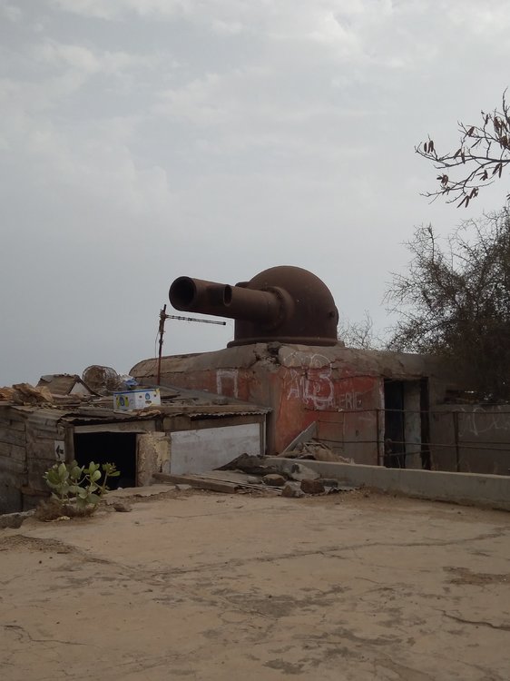 18. Been in Senegal. I searched if there was something related with this and...I m too lucky. In fact, "battle of Dakar" existed (http://warfarehistorynetwork.com/daily/wwii/debacle-at-dakar/ , https://fr.wikipedia.org/wiki/Bataille_de_Dakar), it was an unsuccesful attempt of landing by Free French troops in Dakar, with the main purpose of pressure the Vichy authorities and administration to join De Gaulle's team. Several and different kind of ships were sent. The operation was a failure for Free France and the troops were finally retired. I found this at Gorée Island, the next forts you can see were used in order to keep out the Free French forces. Curiously, it isn t exactly abandoned there. People is using it nowadays to expose their art...and to hang out their washing! I don t know if you can see it, maybe putting "shine" option to maximum...but down there numerous artist are guarding their works...and I don t know, but probably some of them even sleep there.