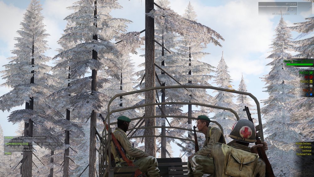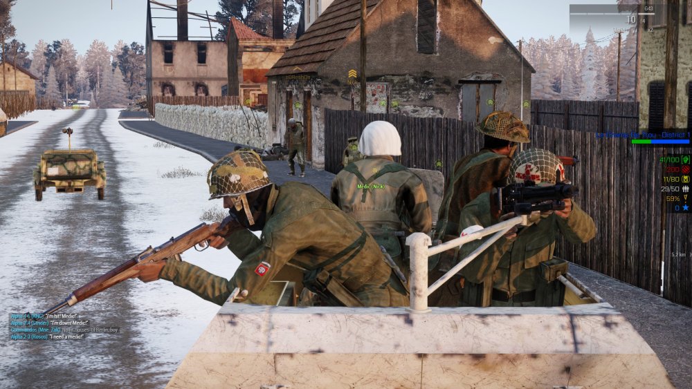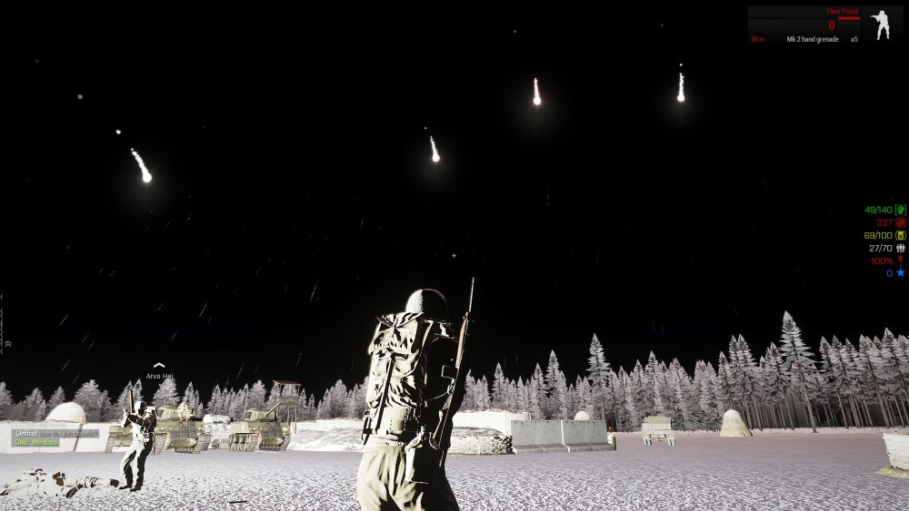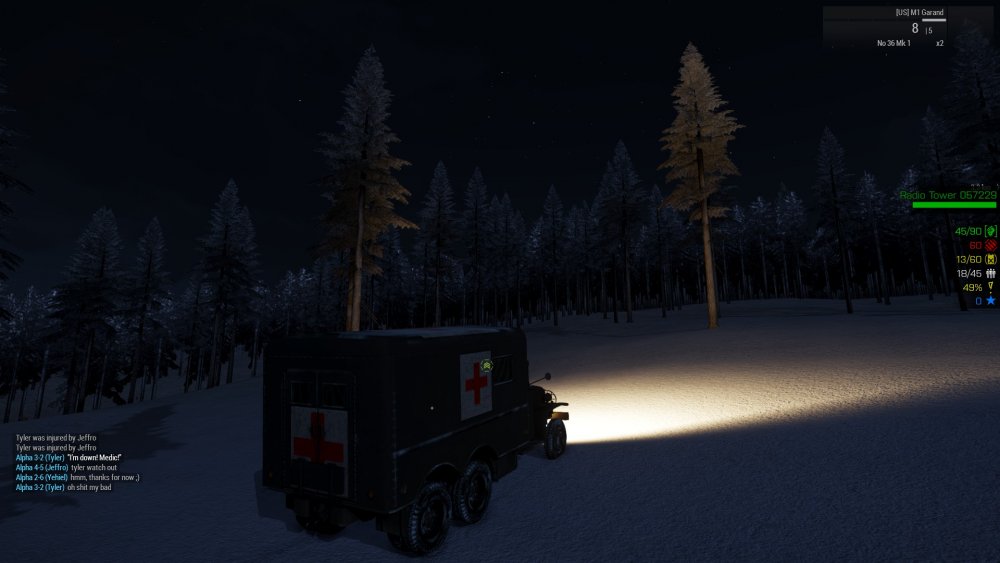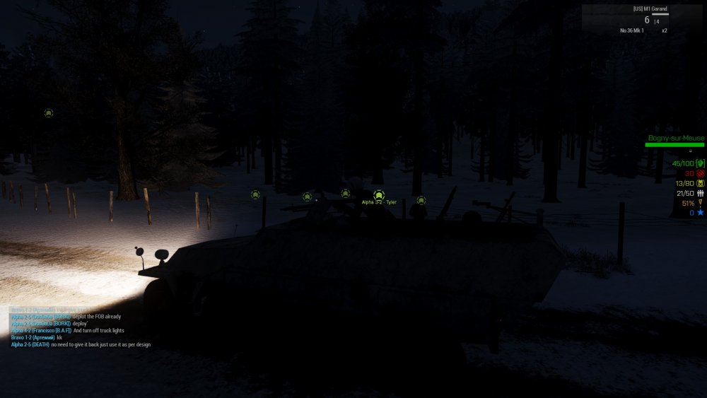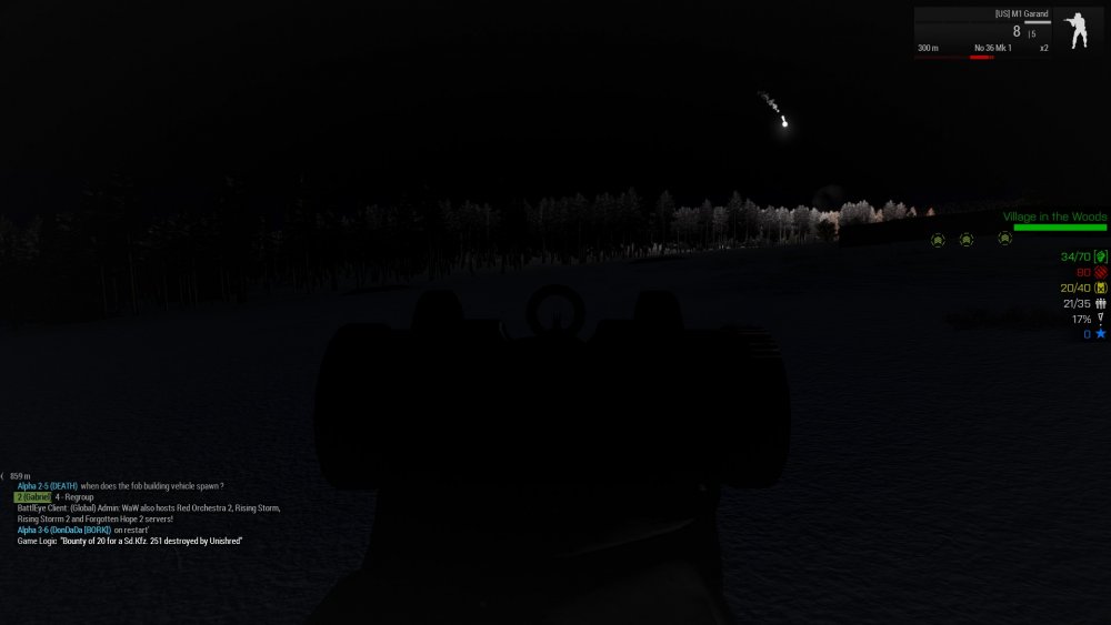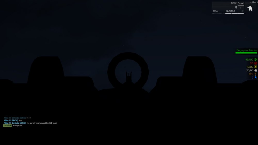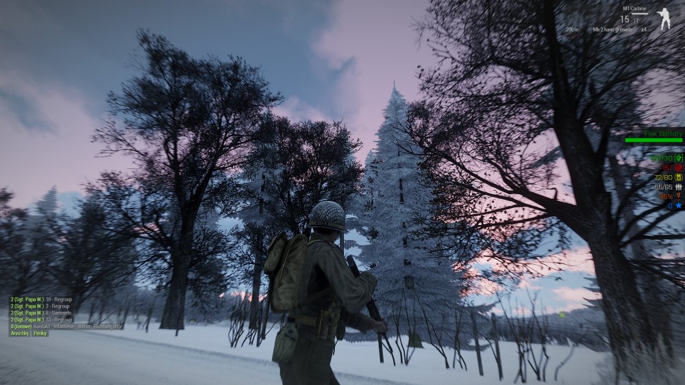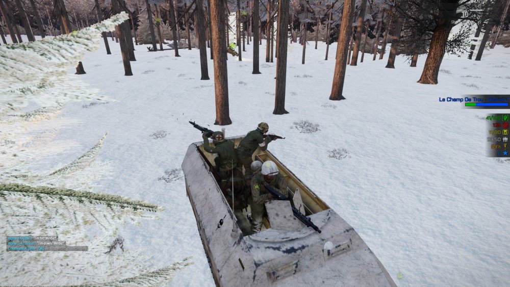 together with @dugenjaz i had another try of the Liberation 1944 IFA3 server of WaW. 18 ppl were on and they're serious about it. first we spawned, got equipment. lots of talk was going on, hard to focus on everything, but when it was about to get a ride and move on all together, it worked out. 20 minutes of driving, then a short briefing in a tent and warming up at the fire until we finally went out to do our jobs. we joined the 44th Divisions squad which build a row of several tanks and trucks. the convoy started in the late afternoon, moving through a french winter landscape. we're heading towards a small town occupied by the germans. i had to go the last kilometers by foot, when the night turned in. so yes, i was late at that appointment. sadly for us/me overall the enemy contacts were pretty seldom and short-timed. but when actions got started it was flashing. the people were communicative and playing as a team. dugen captured some evil computergerman equipment such as the K98 and a stahlhelm for himself (for fashion reasons, i think). anyway - we had some gripping coordinated attacks on (in this case) german positions and sometimes were taken out by them, dragged back that medics could revive us. we had a good time and are looking forward to more great IFA3/FOW gameplay! some (non-action) screenshots: