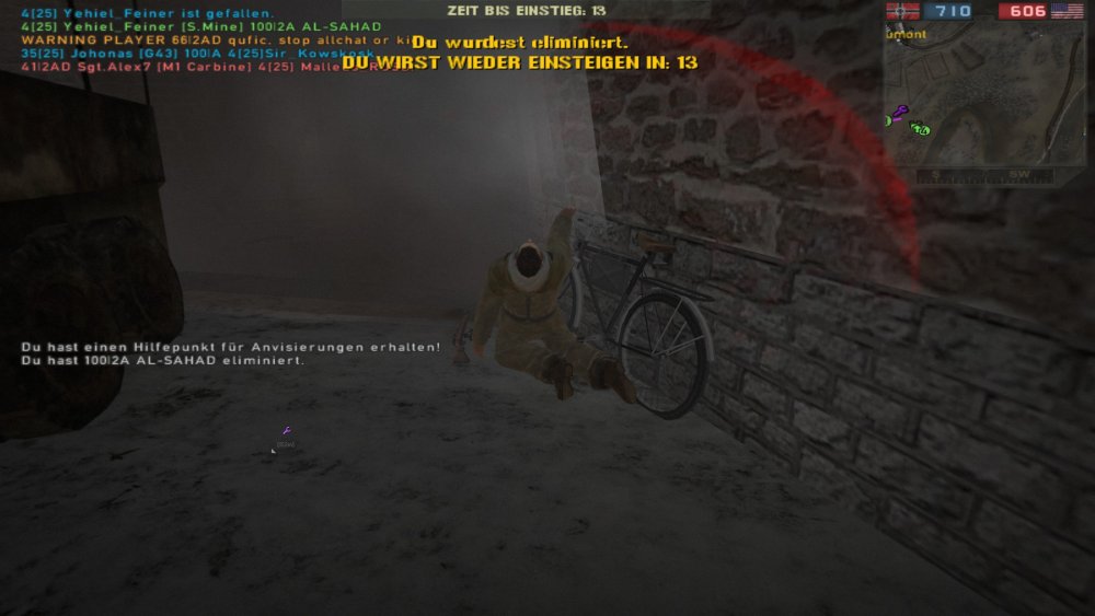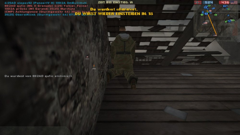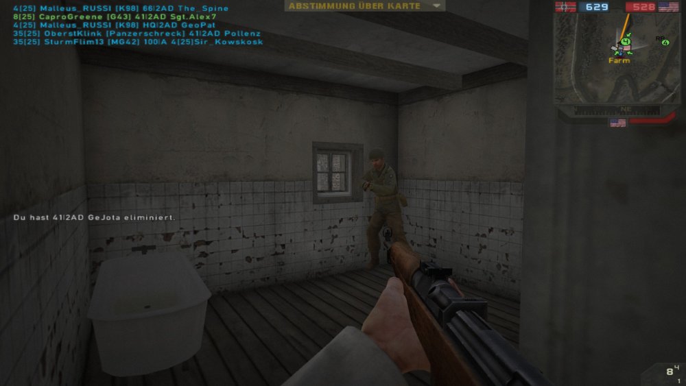 again some random screenshots of WaW's IFA3 Liberation 1944 server: saturday night, more than 20 ppl online. we started ingame at nighttime, had to make use of the flare pistol to see something. a stuka's tail gunner caused us problems while moving towards the next position. garand-fire into the sky! sadly there's no screen that captured this daunting scenery. at dawn we came back to infantry battles. had some good teamplay, reviving and getting revived! - don't forget your medikit! out of ammo i decided to grab a G43 which is the better rifle imo, also in this game.