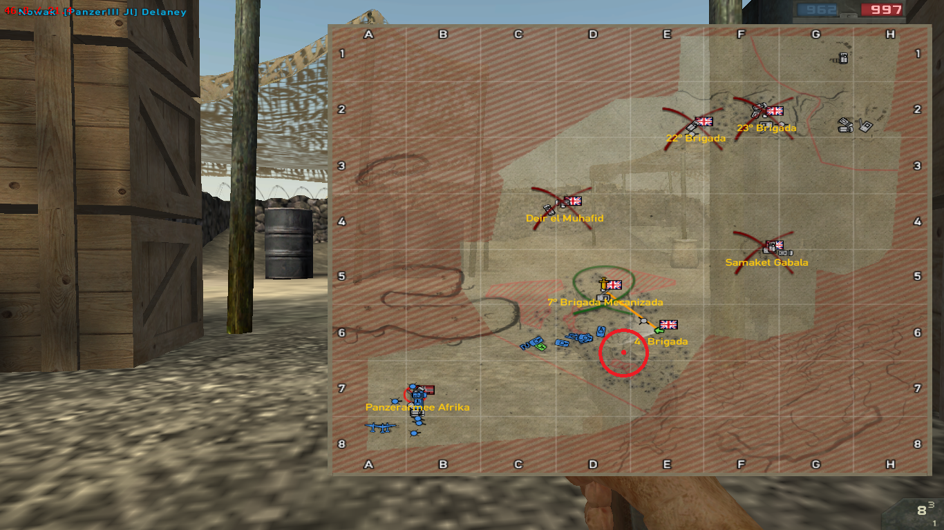 RayderPSG Posted October 22, 2018 Author Posted October 22, 2018 Algunos consejos sobre como transmitir al resto la localización o dirección del enemigo. Para situar las cosas en el mapa nos serviremos de 2 herramientas: horas de reloj (la más usada) y cuadrículas del mapa del juego. -Cuadrículas: En el caso de no poder spotear ya sea con binoculares o por estar en algún vehículo, habrá que comunicar la posición de esa unidad enemiga en el mapa. Para ello nos serviremos de las cuadrículas; A3, B4... y en el caso de querer especificar más, dividiremos imaginariamente la cuadrícula en nueve subcuadrículas, numerandolas del 1 al 9 y comenzando por la parte inferior izquierda. Por ej: Imaginemos que detectamos un francotirador enemigo en la posición representada por el punto rojo: En este caso tendremos que comunicar: Francotirador enemigo en D6 Keypad 3. 1. Grid y keypad. La imagen debería hablar por sí sola. Cada mapa tiene un grid (rejilla) en el minimapa y dividimos ese grid en 9 pequeñas secciones simplemente como el teclado numérico en la mayoría de teclados. Siempre deberíais decir la localización del enemigo diciendo el grid y el keypad en el que se encuentra, tanto en el teamchat o en el teamspeak, para que el resto lo vea. Aunque tengas binoculares y spotees al enemigo, siempre ayudar chatear o hablar por teamspeak, por varias razones: 1-a lo mejor simplemente tu equipo no se dio cuenta del spoteo. 2- El sistema de spoteo en FH2 está algo bugueado y no todo el mundo puede ver en todo momento los spoteos, es un viejo problema jamás resuelto del todo en FH2. 2. Si necesitas informar de direcciones generales del enemigo usa la brújula debajo del minimapa, en la esquina superior derecha. 3. Si estás atacando/defendiendo una bandera, usa el sistema del reloj para informar sobre el movimiento del enemigo. El norte son las 12 horas, el este las 3, el sur las 6 y el oeste las 9. En el caso de estar defendiendo una zona o bandera en concreto y detectamos mucho más movimiento, es mucho más cómodo tomar como referencia las horas; con las 12 siendo el Norte, las 9 el oeste, las 6 el sur... Por ejemplo para hacer una idea al equipo de por donde se encuentra el francotirador con este método, suponiendo que somos la flecha verde de la bandera 4ªBrigada (segunda foto más abajo), sería de la siguiente forma: Francotirador enemigo sobre las 7-8. Se que esto muchos de vosotros lo sabéis, pero por si acaso lo cuelgo. Recordad, siempre que os maten o matéis, contad donde ocurrió. Si matasteis a alguien a las 12, puede que haya un RP allí y salgan 5 o 6 tíos. No los vas a matar a todos, así que cuéntaselo a tu squad! 4