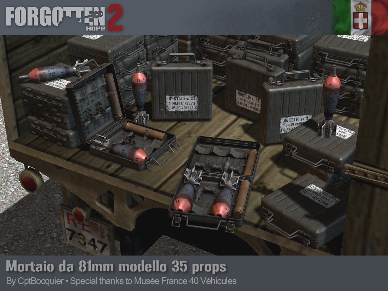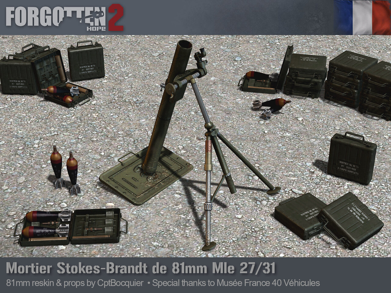 RAnDOOm Posted December 29, 2021 Posted December 29, 2021 Hello and welcome back to another Forgotten Hope 2 update. Once again we find ourselves in that weird week at the end of the year. 2021 is nearly over but the new year has not quite arrived yet. We'd like to wish everyone the best for 2022, and as a (slightly early) new year present we are showing off some things that have been in the works for a while now. Before that though, we also have a couple of renders of more of the great little detail work that is going into the next release. After World War 1, French manufacturer Brandt worked to improve the rather basic British Stokes mortar. While their design kept the same basic aspect, it was nonetheless redesigned and paired with better munitions. It was introduced as the Mortier Stokes-Brandt de 81mm Mle 1927, later modified to the Mle 27/31. When set-up, it could fire 20 bombs per minute up to 2 kilometres. It quickly proved a large success. Throughout the thirties it was sold, built, modified or copied by more than 20 countries including the United States, Finland, Italy and the USSR. Our Mle 27/31 is a reskin by CptBocquier of the US M1 Mortar made by altfuture and Toddel. The ammunition for the 81mm mortar would be carried in metal boxes, each one containing 3 bombs (infantry) or 6 bombs (cavalry). The ones showed here are the infantry variant, as it was also used by Italy for their own variant of the mortar. We would like to thanks the people at France 40 Véhicules museum who allowed us to take a large amount of pictures and measurements in their collection, in particular for the 81mm boxes. Check them out at their website here. Perhaps the most impressive difference between 2.58 and 2.6 is the rework to our ingame HUD. The old design was not much more than a modification to the original BF2 HUD, and apart from some changes to the minimap has been the same since 2.0. We hope that the new design fits the theme of WW2 a lot better, and should also work a lot better on the larger, wider modern displays. Every texture has been doubled in resolution, and the game will now detect your screen ratio and adjust the menus accordingly - no more stretched textures in widescreen. Much of the design and graphics work can be attributed to Ekiso, with McCloskey and Stubbfan also contributing. Also we would like to thank Mats391 from Project Reality for a HUD related fix for the flagbug issue. Perhaps the most exciting part of the new HUD is that it comes along with extensive customisation. You can see from the (work in progress) menu that there are plenty of options available for you to try out to get the game looking how you want it. Original post here: http://forgottenhope.warumdarum.de/news.php?id_news=596 3