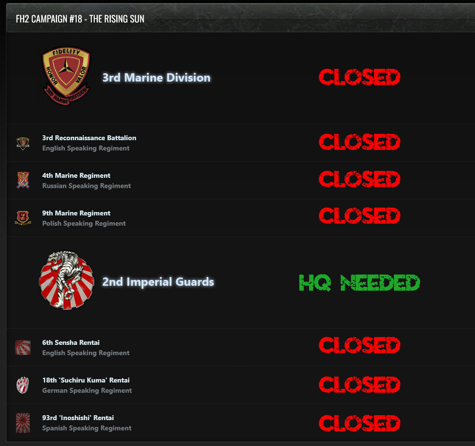 RAnDOOm Posted September 5, 2025 Posted September 5, 2025 A new FH2 campaign will be starting very soon! We need players to volunteer for some leading roles. If there are no volunteers to lead the teams, regiments or squads then the campaign will NOT go ahead! The needed positions are below: Axis HQ If you're interested in any of the spots above please let us know. Without HQ and other leaders, the campaign will be delayed until people volunteer! Keep in mind that you won't be left on your own. You'll be supported by other players and the admin team. All the help needed will be given. POST BELOW if you're interested in any of the roles (HQ / CO / SL), or send a PM to @RayderPSG , @Sir_Kowskoskey, @RAnDOOm or @Hawk 3